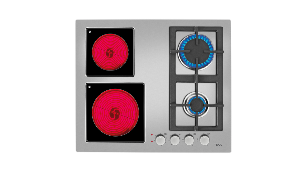 Placa Mixta con 2 zonas Vitrocerámicas y 2 quemadores de gas butano